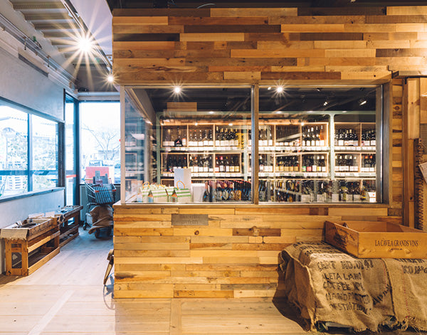 店内奥のカフェスペースでは、店舗でご購入いただいたお酒やおつまみなどの商品をその場でお楽しみいただくことができます。ナチュラルワインは約800種類以上のワインからお選びいただけます。